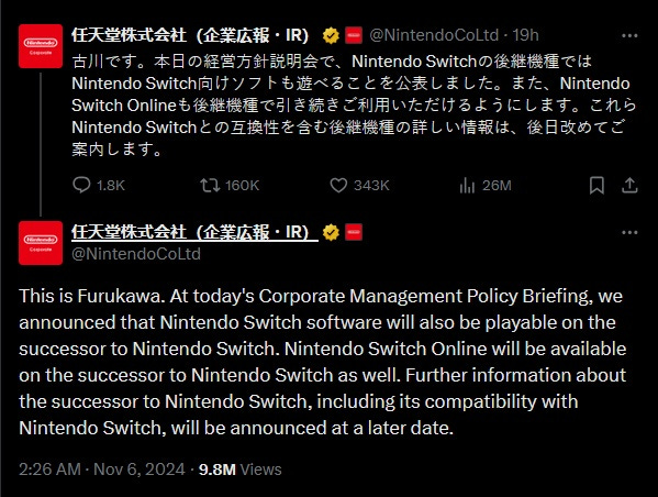 La successeuse de la Switch sera bien rétro-compatible avec tous les jeux Switch. Et sera compatible avec le Switch Online. Et l’action Nintendo a bien remonté à cette nouvelle :