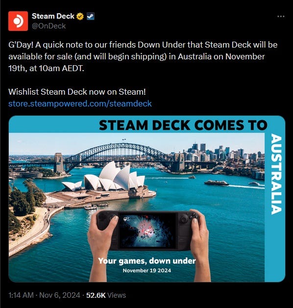 Le Steam Deck sera en vente en Australie à partir du 19 Novembre :